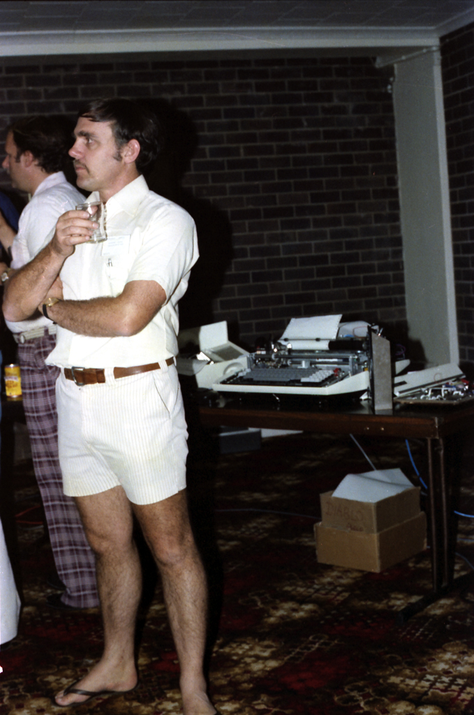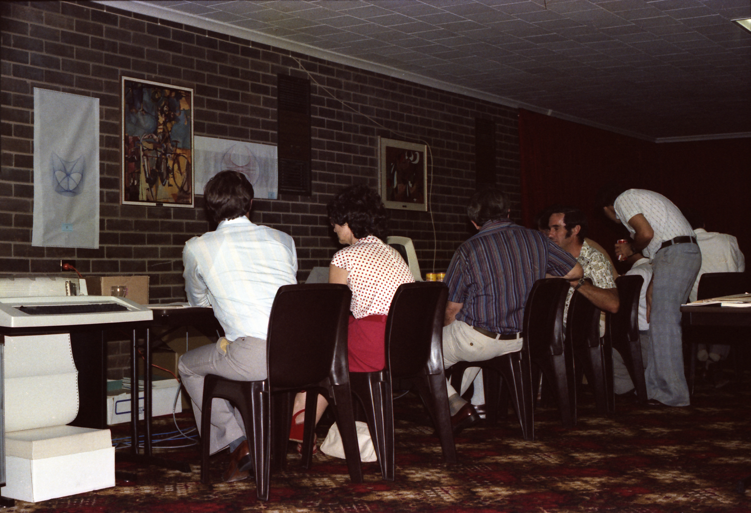 1979 saw the first of the Surfair Conferences. These were run by the Prentice Computer Centre for University senior staff, at the Surfair Resort near Maroochydore on Queensland's Sunshine Coast. The purcpose of the conferences was to introduce the senior staff to current abilities and opportunities in computing.A PDP-11 running DN82 software acted as a multiplexor for a number of terminals, connected back to St Lucia via a leased modem line - very innovative at the time! Communications Engineer Graham Rees managed to convince the local TV station to add Teletext information specific to the conference.