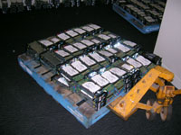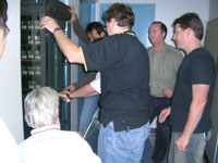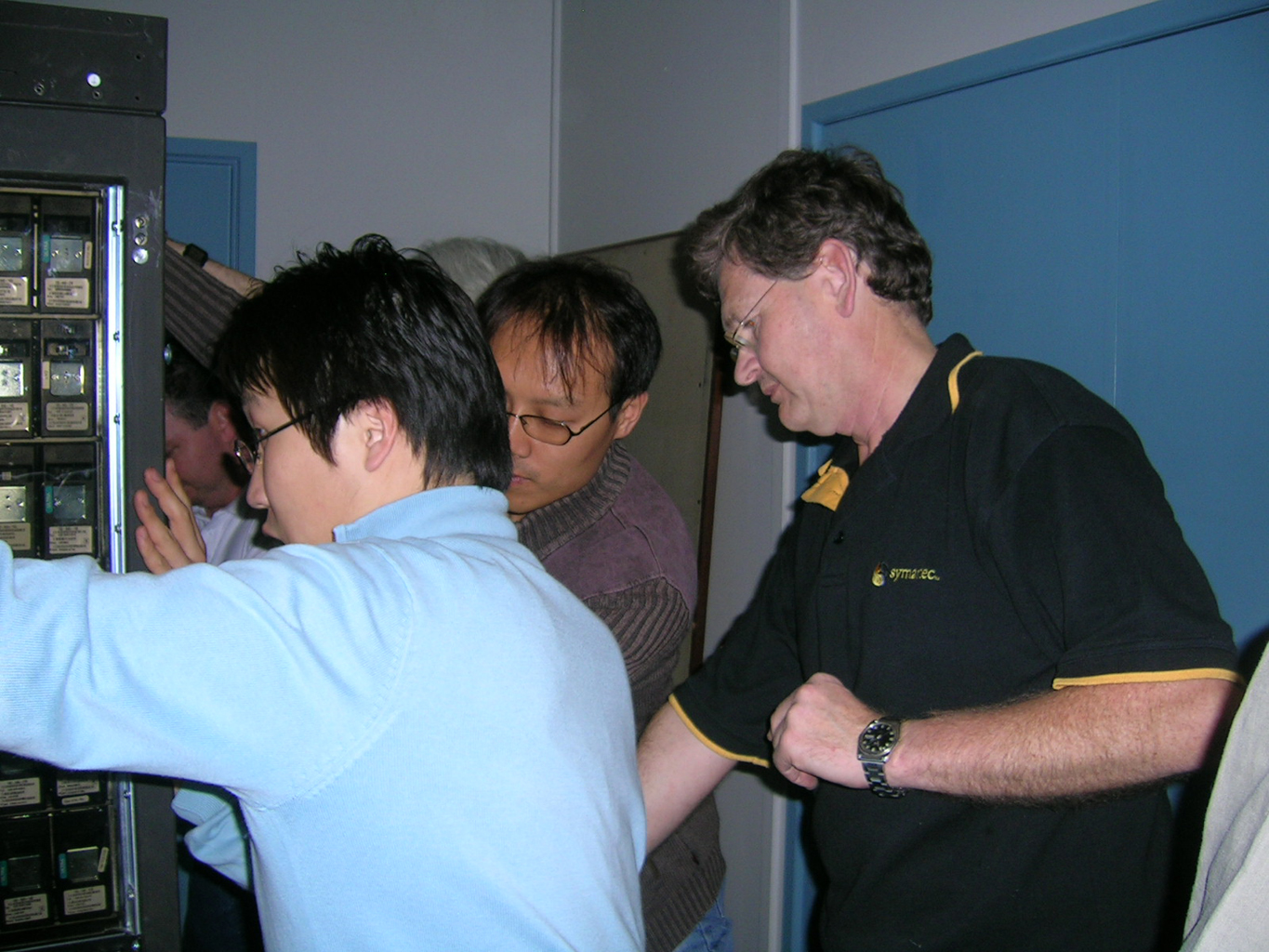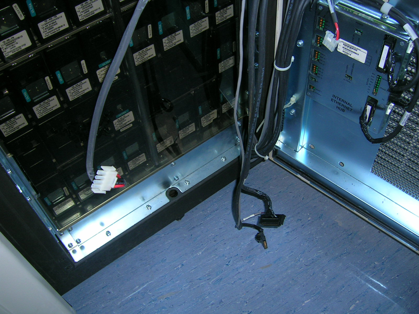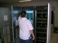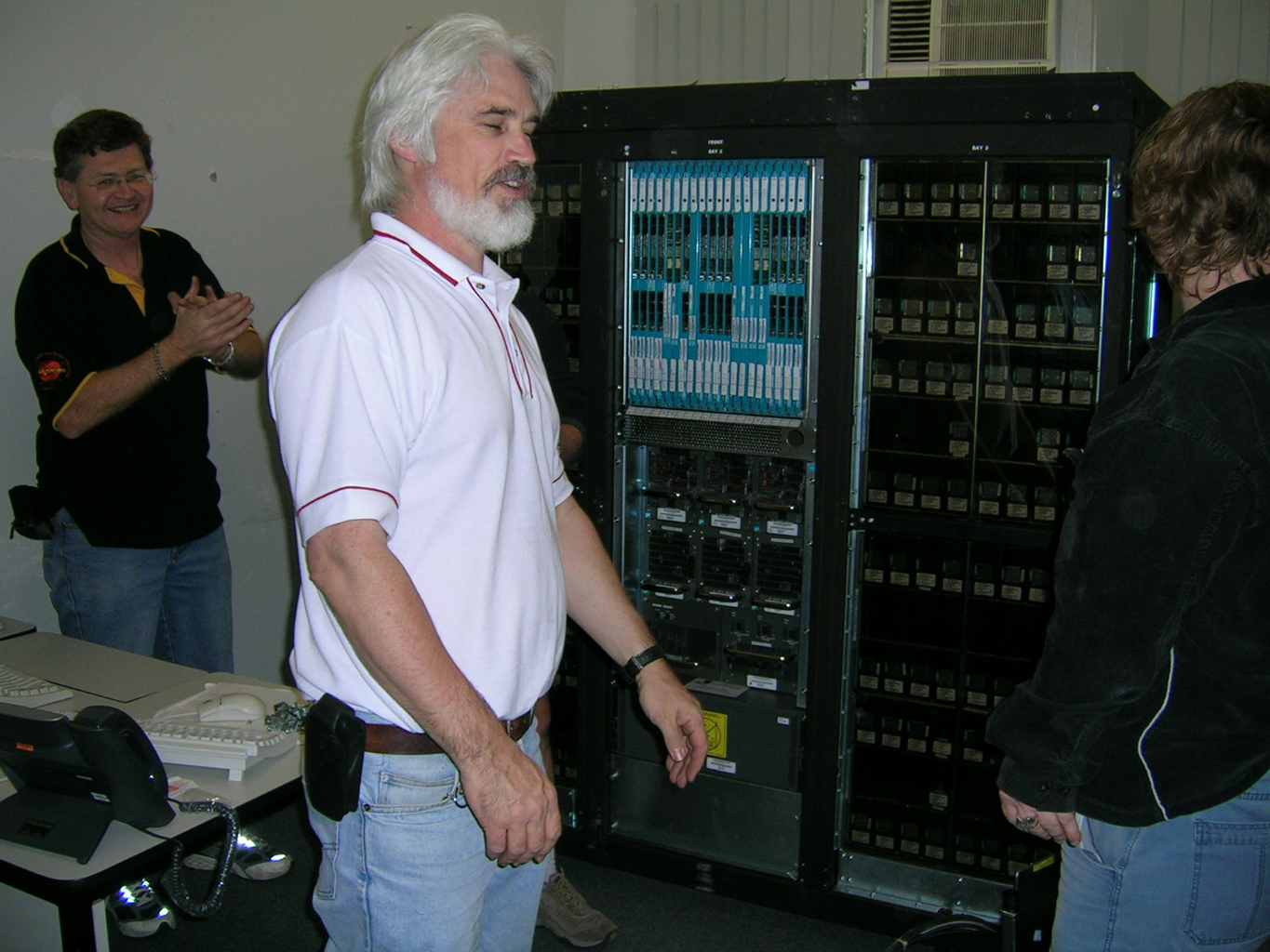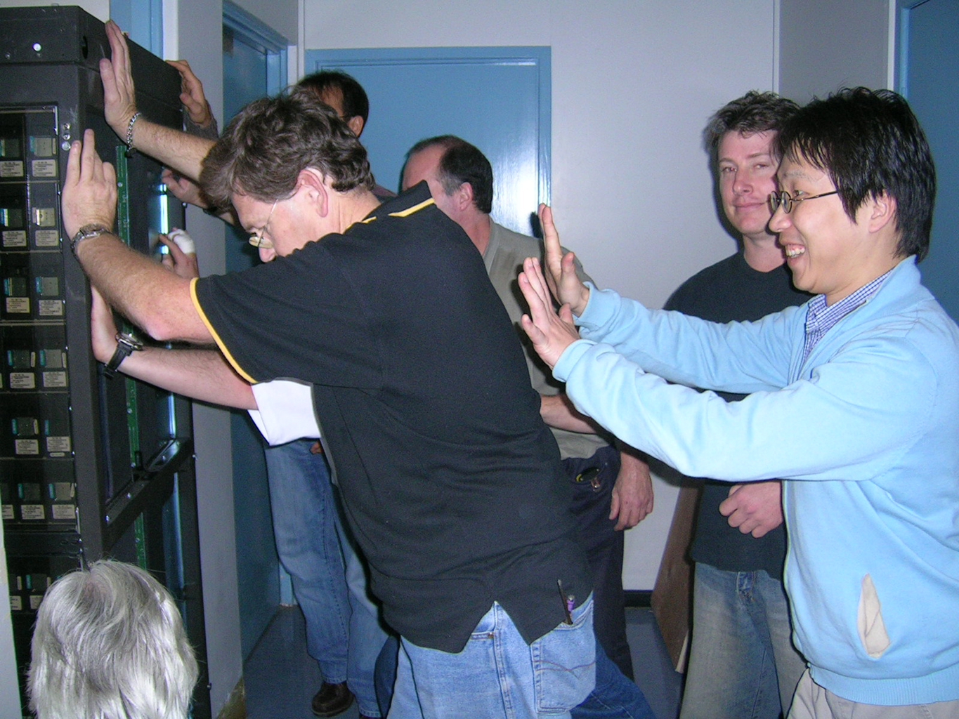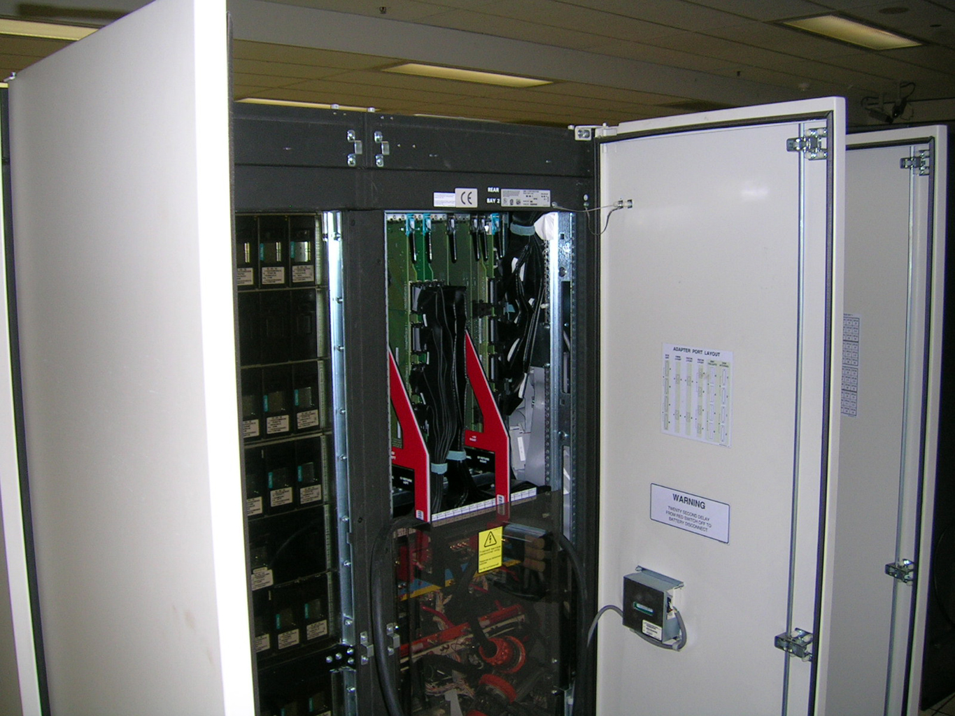 The Queensland State Government's Department of Housing donated a EMC Symmetrix 3930 14TB SAN to the Museum. This device was the size of three normal racks joined side by side, and weighed about 1.6 tonnes. Moving from the Fujitsu data centre in Mary Street Brisbane to St Lucia proved to be an interesting challenge!The SAN contains 297 50GB SCSI disks, has its own internal UPS and requires two 3-phase power feeds.