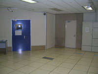 Down the corridor… Notice the SAN cabinet panels against the wall.