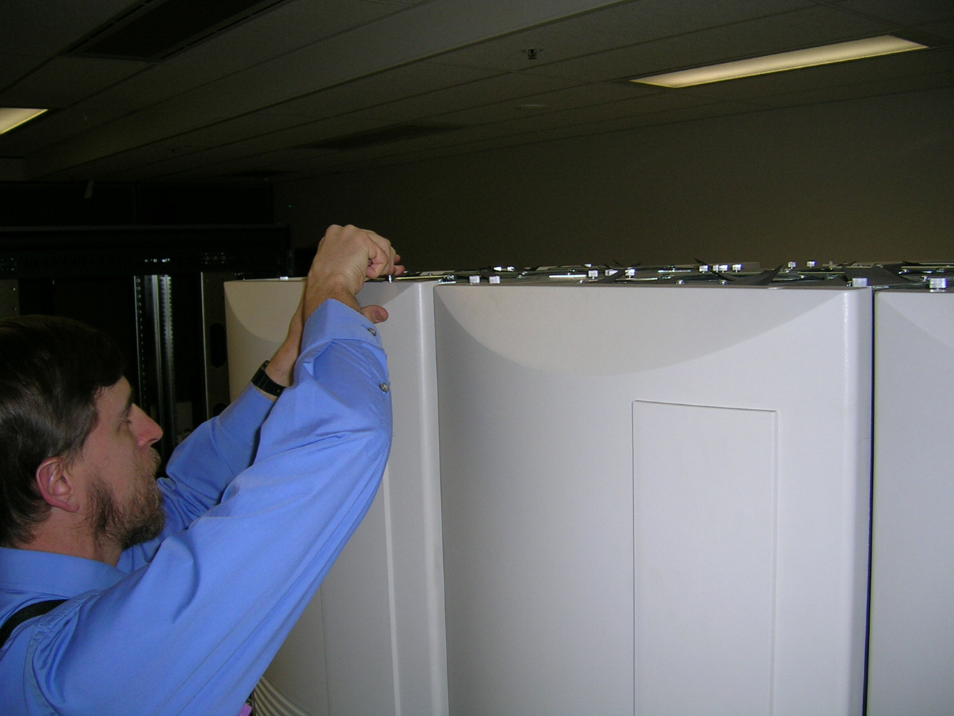 In order to get the SAN down to a weight that was considered safe for the data centre ramp, we had to remove all 297 disk drives, and then replace them once the SAN was on to stronger floors.