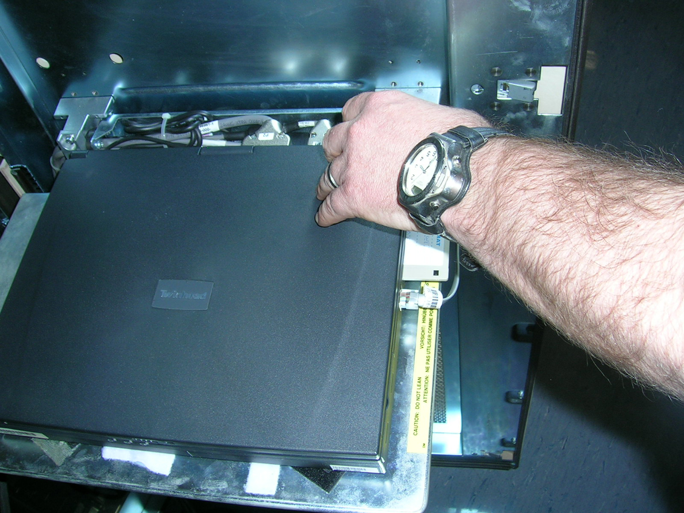 Alan thanks various deities that this job is finally over. Without the doors, the internal layout of the SAN is visible.