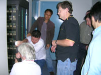 Now for the fun bit. The SAN is too wide to fit through the doorway at UQ; we need to remove the room door, and take the side panels off the SAN in order to get it inside. So we need to document where all the connectors go, and the easiest way is to take photos of everything.
